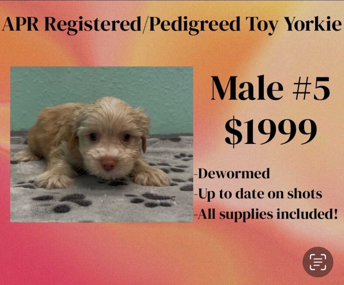 New arrivals! We just got some gorgeous puppies. 5 little APR registered gold Toy Yorkies!