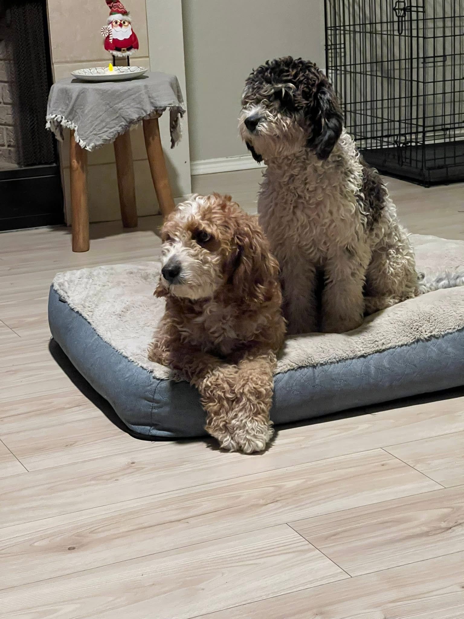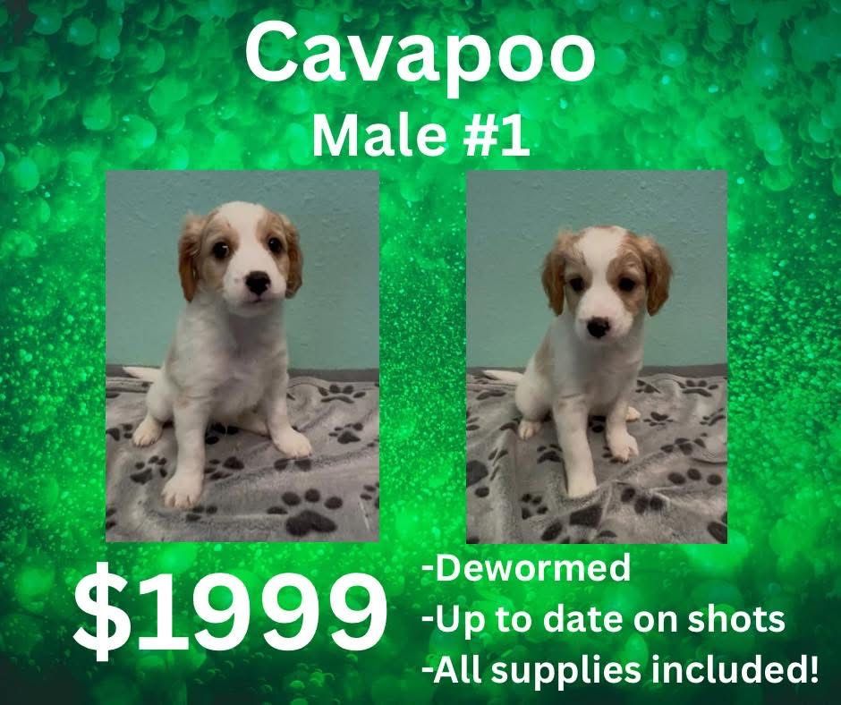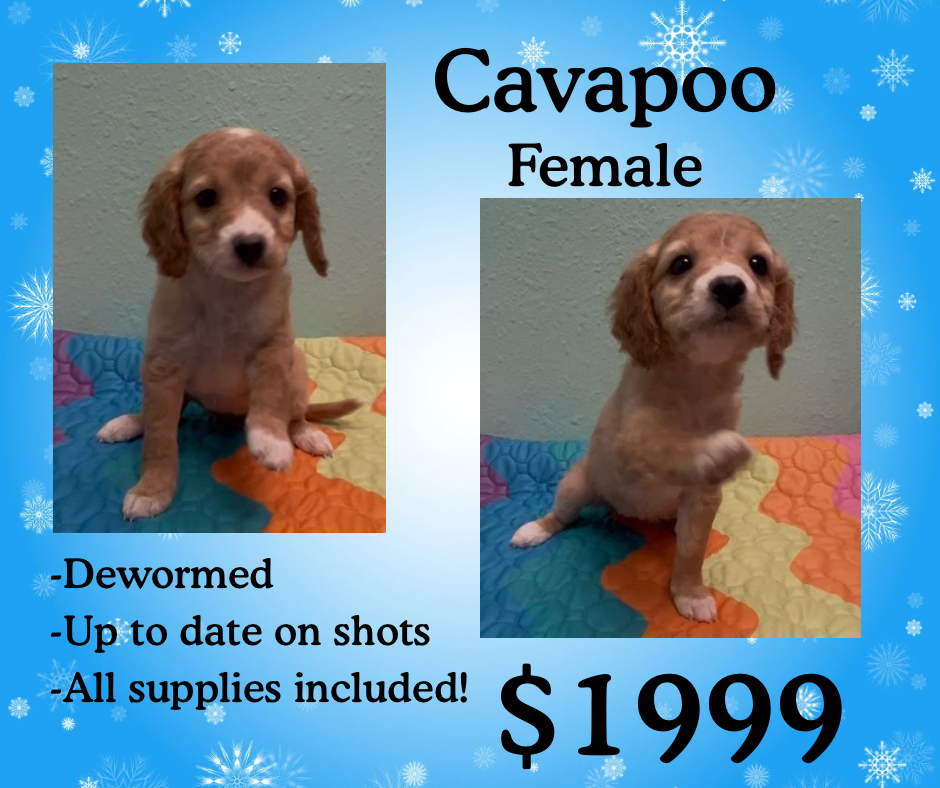 I knew they’d find homes quickly! Mom and dad are both on the smaller side at 20lb each. Both parents are Cavapoos as well (Cavalier King Charles Spaniel/Mini Poodle). We have 2 males and 1 female (pictured below). These puppies are very intelligent, playful, quiet, lovable, and “calm”. Cavapoos are perfect family dogs that get along great with everyone, Priced to move at only $1999 each! The last 3 pics are of the parents. They’ve had their 1st round of booster shots and have been dewormed.Also included in the price are all of the supplies: Nutrisource puppy food, a leash, collar, food/water bowl, a brush, multiple toys, shampoo, potty training pads, and training treats. Feel free to stop by the store or give us a call during business hours if you are interested or have any questions, or would like to see/interact with them in the puppy play area.