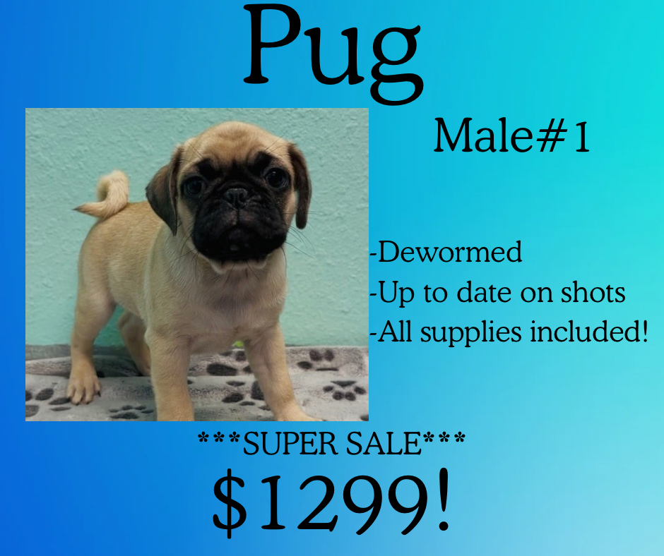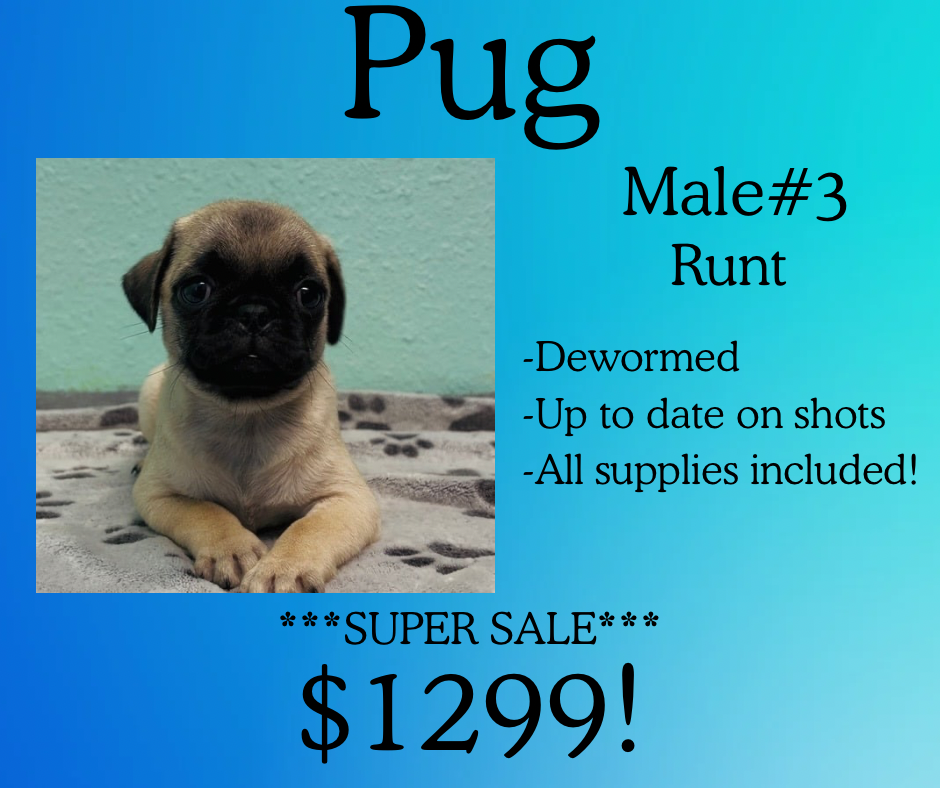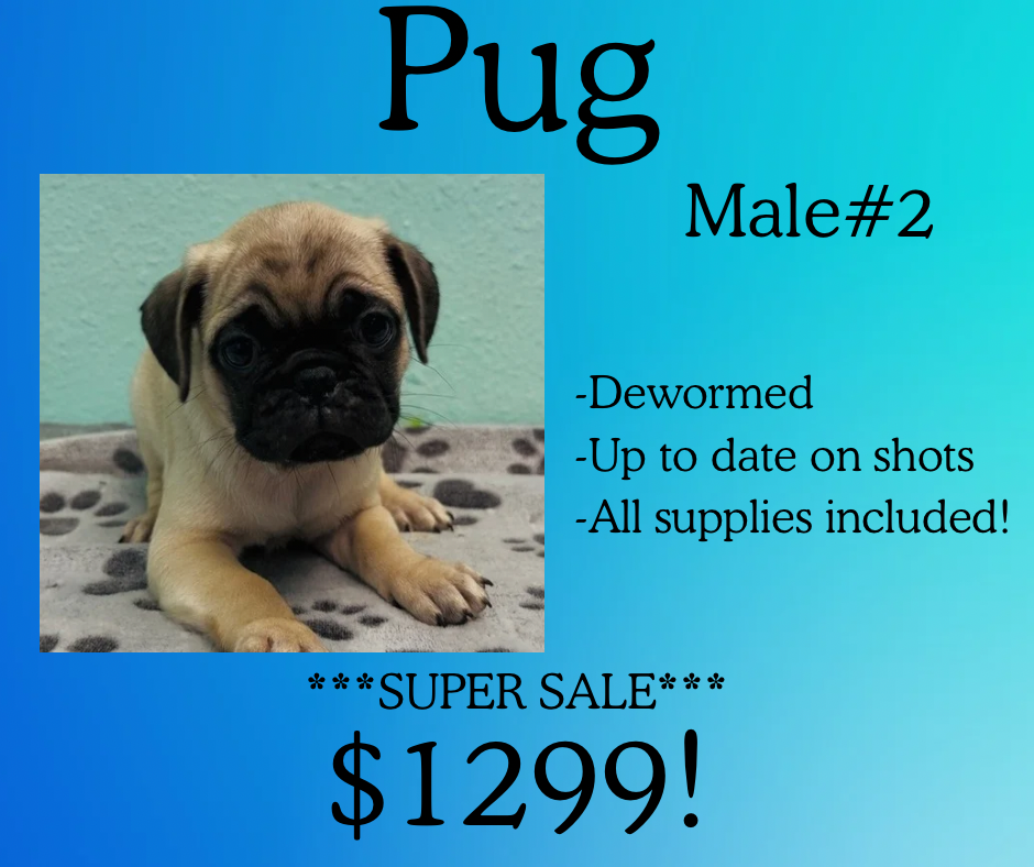 UPDATE: The Two Remaining Pugs For Sale Are Pictured Below. 4 little boys. When They say “perfect”, I mean they’re short-legged, stocky, have perfect shiny coats, and most importantly their faces are show-quality. Square faces, perfect non-googly eyes, and their snouts are exactly how they should look. You won’t find a better quality Pug at a better price. Prices in the collages. Also included in the price are all of the supplies: Nutrisource puppy food, a leash, collar, food/water bowl, multiple toys, shampoo, a brush, training treats, and potty training pads. These won’t be here long. Feel free to stop by or give us a call if you have any questions, or would like to see them in person.